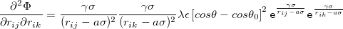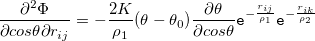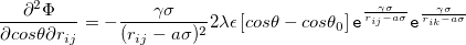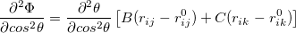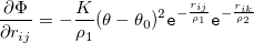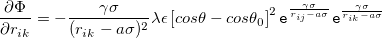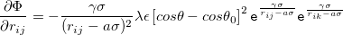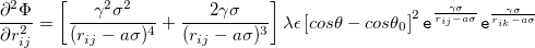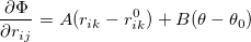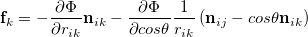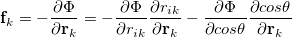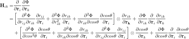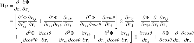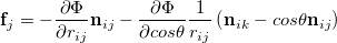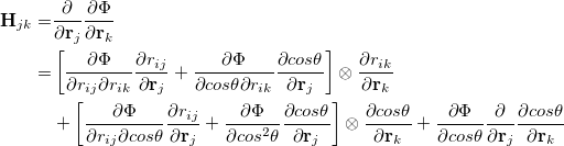 The force (first derivative of potential) and hessian (second derivative of potential) are also provided in the angle potential. By simple call the Force() and Hessian interfaces directly, they will return the (fj, fk) and (Hij, Hik, Hjk). The other force (fi) and sub-hessian matrixes (Hii, Hji, Hjj, Hki, Hkj and Hkk) can be constructed by the outputs. See more in the derivative section.