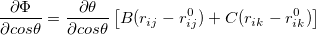 Angle potential calculates the interaction relation of an angle, which was constructed by three atoms. The angle potential is defined as: