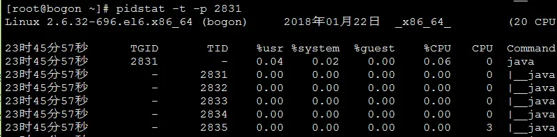 注意:task和子线程的全局的统计信息和pidstat选项无关。这些统计信息不会对应到当前的统计间隔,这些统计信息只有在子线程kill或者完成的时候才会被收集。