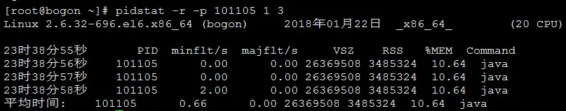 使用-r选项,pidstat将显示各活动进程的内存使用统计: