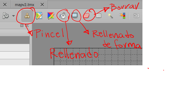 Tiled se puede ver como un Paint, excepto que los colores son imagenes que se seleccionan en el Conjunto de Patrones en lugar de una paleta de colores.