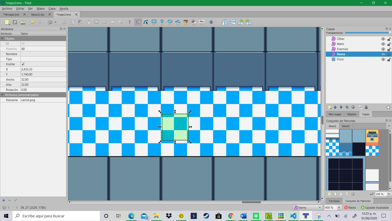 - Ya estan los tilesets más recientes en la carpeta de assets del proyecto (están en la unidad compartida de Drive en assets>tilesv2.png)
