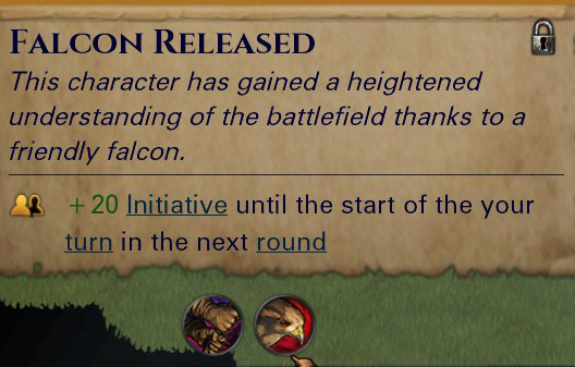 In update 0.7.0 we added a new effect to the Falcon. When you release a falcon, all of your characters gain +20 Initiative until the start of their turn in the next round.
