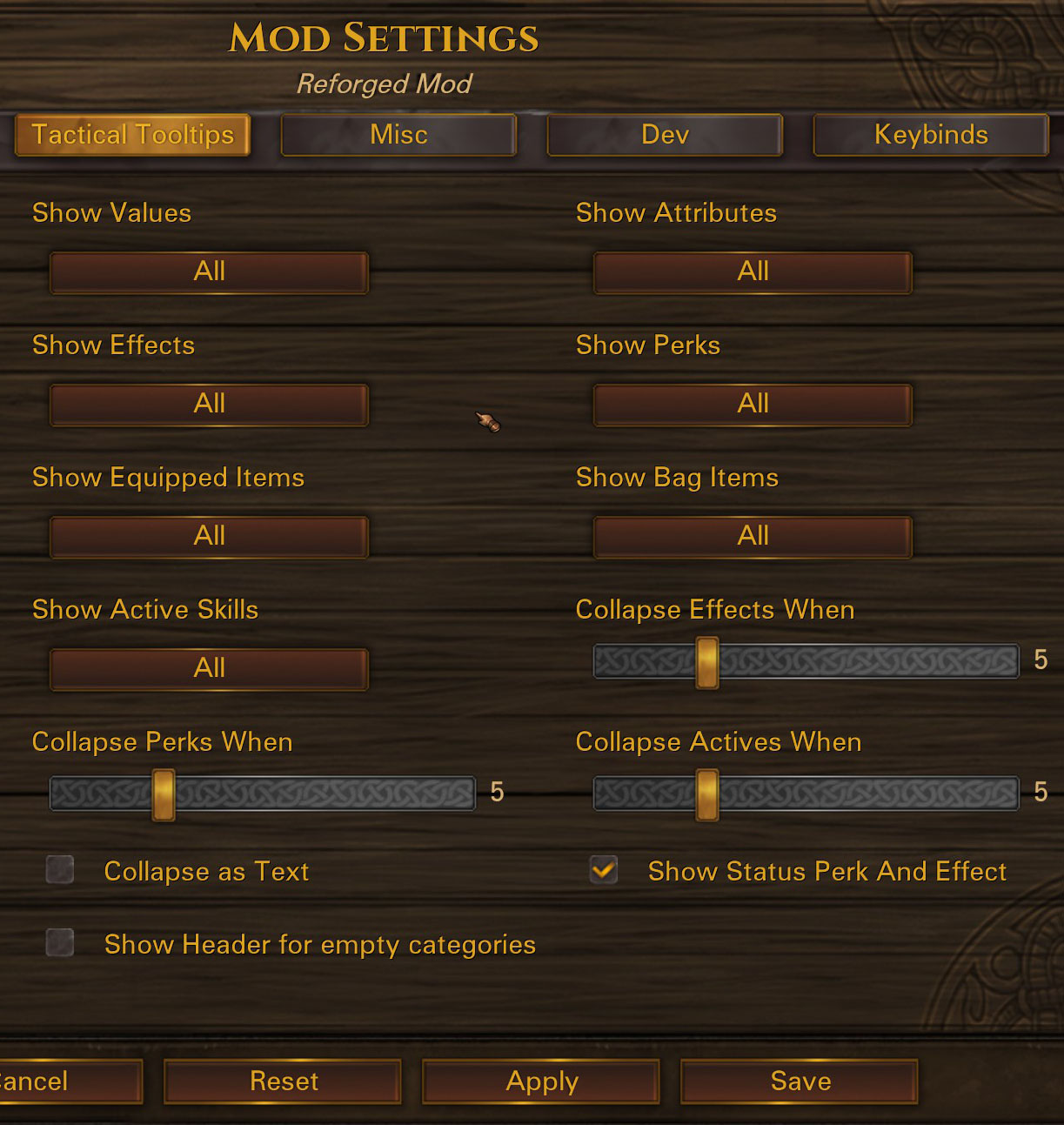 Many players prefer the vanilla style of hiding various bits of information such as enemy Hitpoints, Fatigue etc. with flavorful immersive words. In Reforged, we show these things as numbers instead. But, in update 0.7.4 we added Mod Options for players to customize this experience to their liking, hiding or showing the information as they please. While we were at it, we extended the feature so that you can even hide the information on your own bros during battle for maximum immersion.