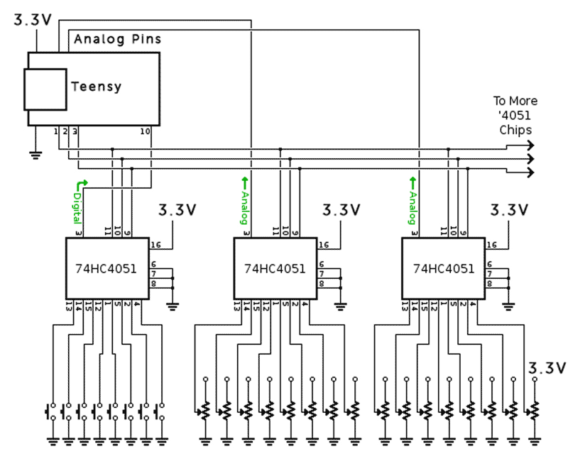 Adding more pins with multiplexers and shift registers - BleepLabs/Arduino-Light-And-Sound GitHub Wiki