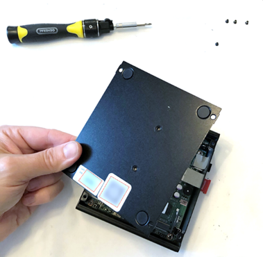 Remove the four screws on the bottom of the Firewalla. Put them someplace safe so you don’t lose them.