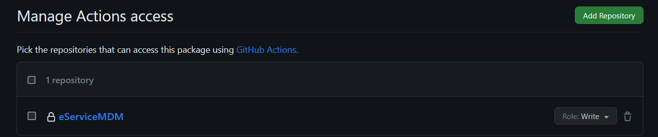 All Projects (Packages) generated must be associated to eServiceMDM repository and give permissions so the package generated here can be pushed.