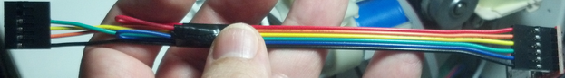 Here is the finished cable after modding. The 6-pin side is lined up the way it should be connected to the Bluetooth module: