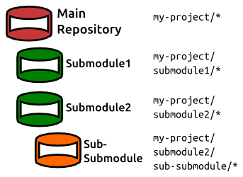 Submodule adalah repositori yang tertanam di dalam repositori lain.