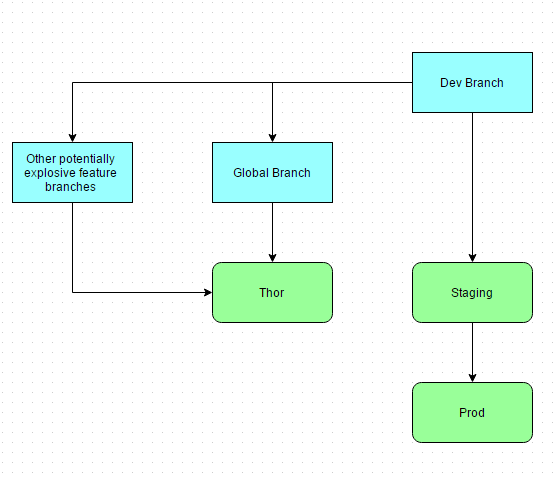 Thor is currently the hub of all potentially 💥 global work, and in the future other branches which could go 💥. Thor has a Fastly layer attached, and can be accessed via thor.dosomething.org
