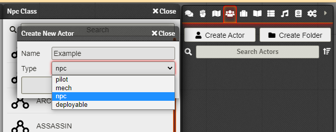 There are 4 types of actors on Lancer for Foundry VTT.