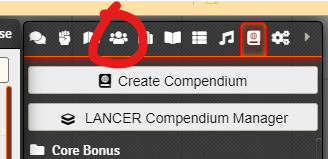 - Click on the "Compendium Packs" icon on the top right menu