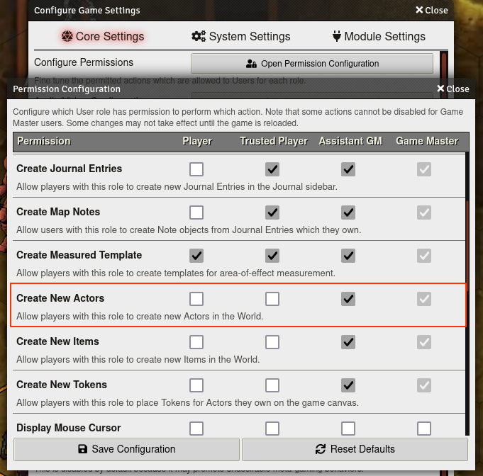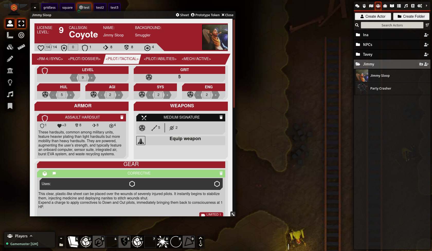 ℹ️ If players are going to import their own pilots, they will need need the **“Create New Actors”** permission in Foundry's permission configuration in order to create Mechs and Deployables.