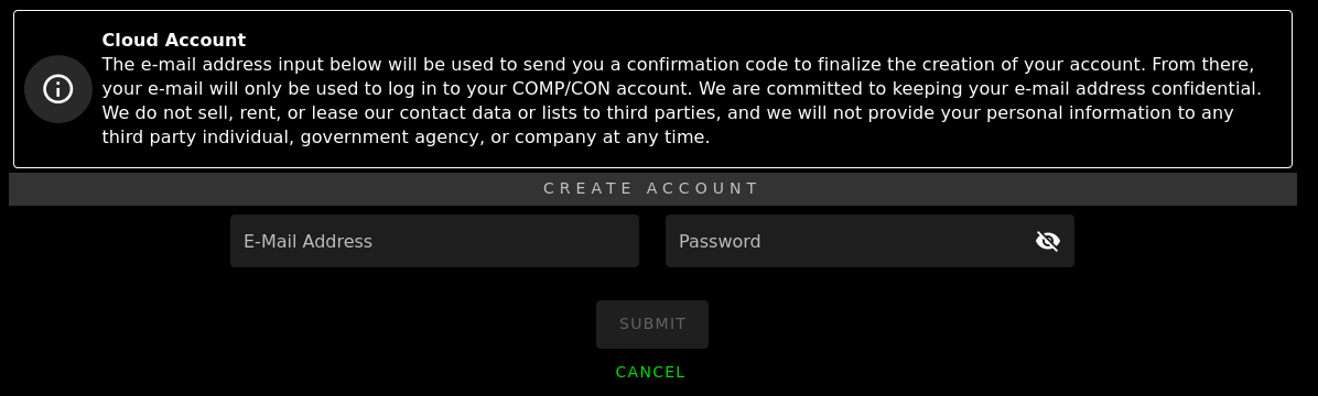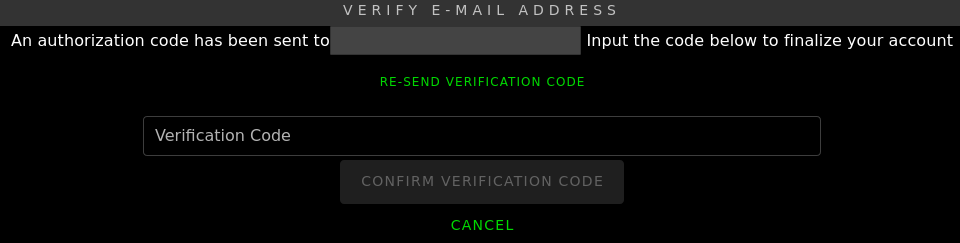 Fill in your email and your desired password, then click submit. The dialog will ask for a verification code.