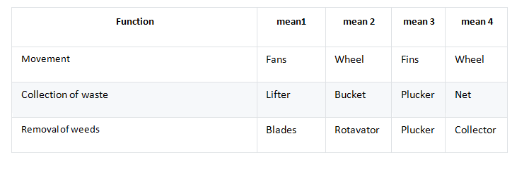 Task 2.4: complete the morphological chart by exploring the other alternative means of achieving the functions.
