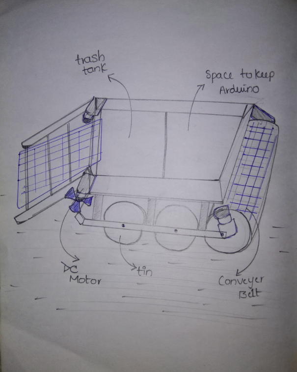 Design a device that should be able to collect floating waste and clean the lake without harming other aquatic animals. The device should be able to continuously work for longer hours. The machine should automatically sail, clean, collect garbage and store it .Its weight should not exceed more than 5kg. The device should not cost more than 4,000.