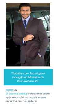 Fernando é um servidor público que se dedica diariamente em contribuir para o avanço tecnológico de seu país, promovendo hackathons e palestras sobre apps cívicos e seus impactos na comunidade. Fernando recebeu convite pelos professores da UnB, e irá ministrar palestrar no MOCAP.