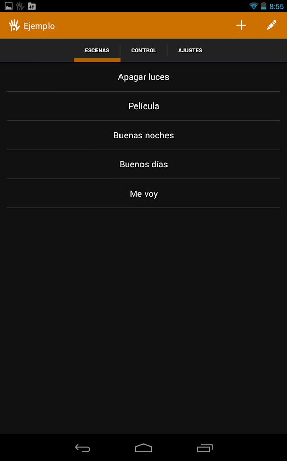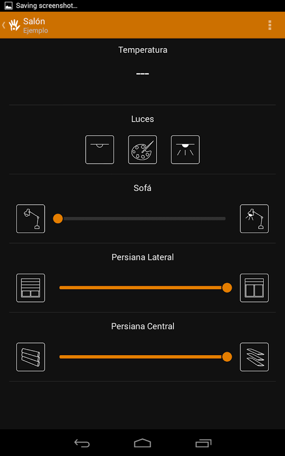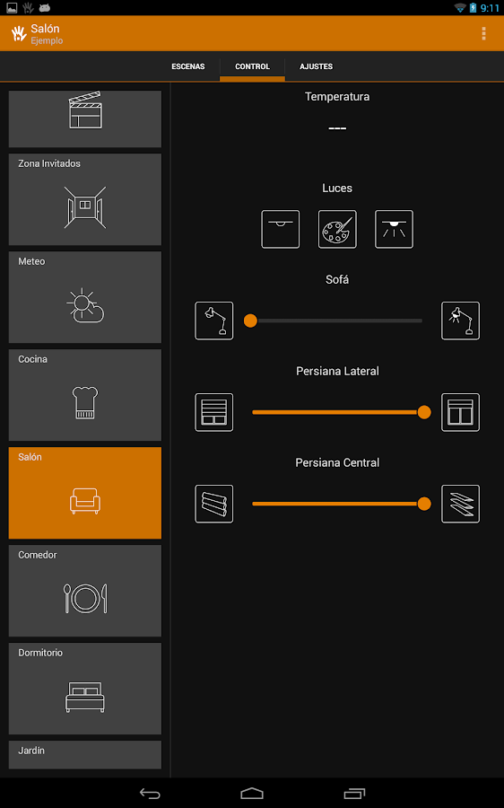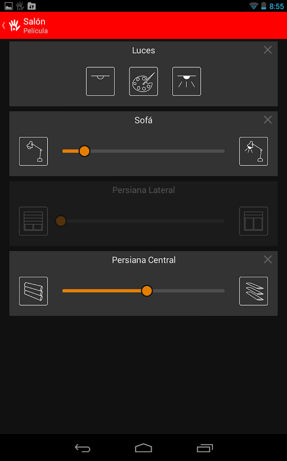 - Permite crear ambientes personalizados. Por ejemplo, se puede crear el ambiente “relax” que ajustará la luz principal al 30% y configurará la temperatura de consigna a 25ºC.