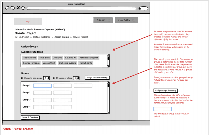 The current state of the project is that the faculty only has one screen to view the overall progress of their site. We have wireframes which add more functionality that hasn't been built out yet which I think are at the top of this list. Particularly the project creation flow needs to be built out since so far we've been using rake tasks to create projects, project groups, and students, which isn't feasible for a large number of projects.
