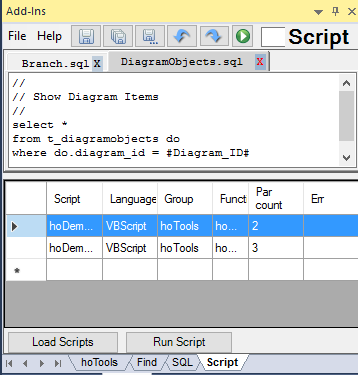Run vbScript, JScript, JavaScript on found query rows Run your Script by pressing a Key combination ( e.g. Ctrl+F1) Click on a Toolbar Button and run your Script Run advanced SQL from Script |