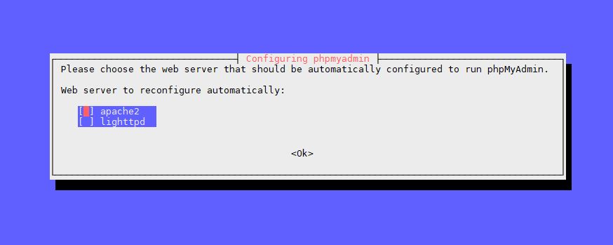 Se instalara el programa y nos preguntara que servidor tenemos instalado, seleccionaremos apache2 ( con un espacio ) y con tabulador vamosa Ok y pulsamos intro