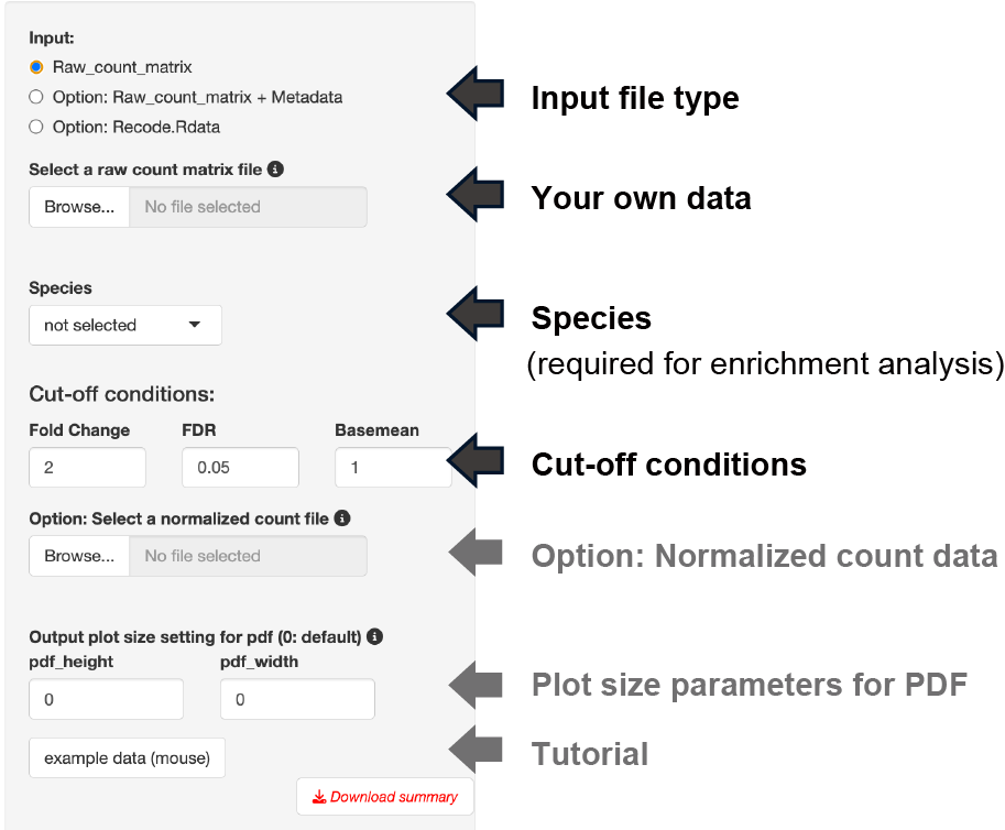 The base mean cut-off can be set using the uploaded normalized count data, such as TPM counts.