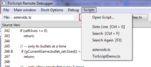 The TinScript Debugger is a fully featured debugging tool, connecting remotely to any TinScript application through the threaded winsock2 socket implementation included in the /external library within this depot.