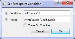 - Also with its own "enabled" checkbox, this is an expression (not a full statement) that, if when evaluated is 'true', will cause execution to be halted. If the condition is evaluated to 'false', execution continues even if the breakpoint is enabled.