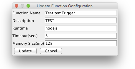 This will download a zip file containing the up to date version of the function, which you can unzip and open up in an IDE. You can now make any modifications to the code you'd like, and once you are done, rezip the directory so it has the same structure as the template you downloaded. Next, in Mission Control right click on the function and select "Update Code"