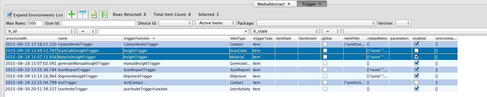 In this example, two separate Triggers reference the same Callable Function called "InsightTrigger". The Triggers are actually based on different item types as well, one Trigger is for items of type ScanCode, the other for Material items. This means that the InsightTrigger Callable Function is handling items of multiple type.