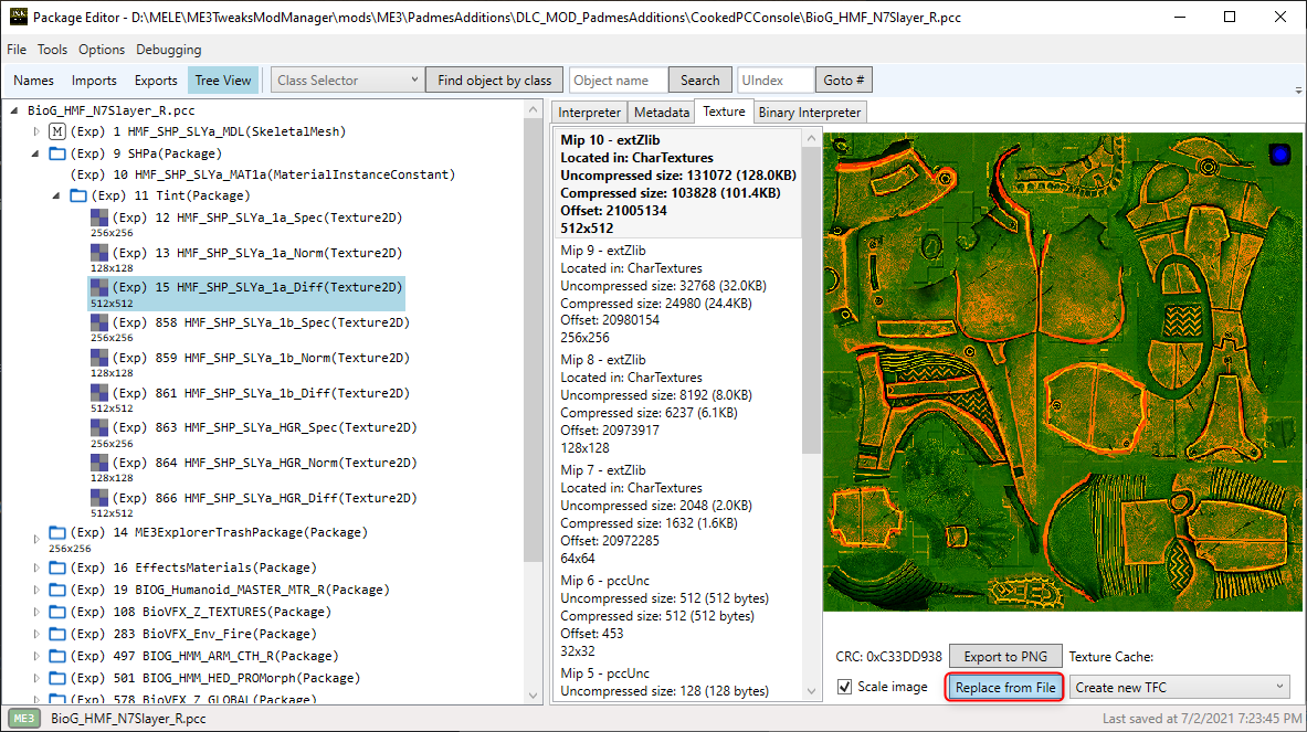 - Now on our next texture instead of select Create new TFC under CharTextures (1) we select our new tfc so for me it is Textures_DLC_MOD_PadmesAdditions.tfc (see Figure 28)