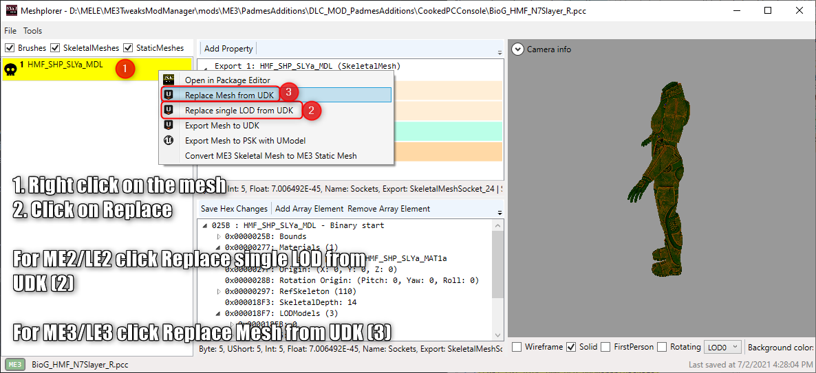 **- For ME2OT/LE2 use Replace single LOD from UDK**