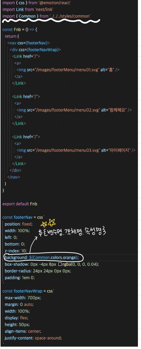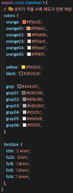μ¬μ©νκ³ μ νλ μμ±λ€μ background: ${Common.colors.orange}; = ${λ³μλͺ