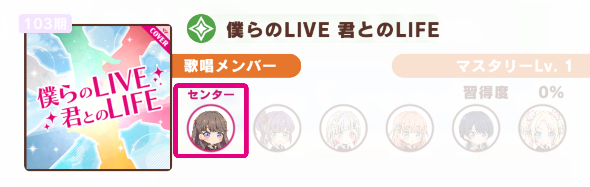 | Learning Live | Increase your Mastery Level for an Idol's center songs to gain bonus effects when you play lives. |