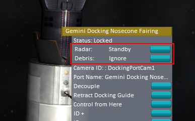 While the radar is on, if a vessel is currently being tracked and targetDockingPorts is true, the radar will attempt to target docking ports when the target is close enough. The radar will select the nearest docking port. If the radar is on a part that has a docking port, it will select the nearest compatible docking port, instead.