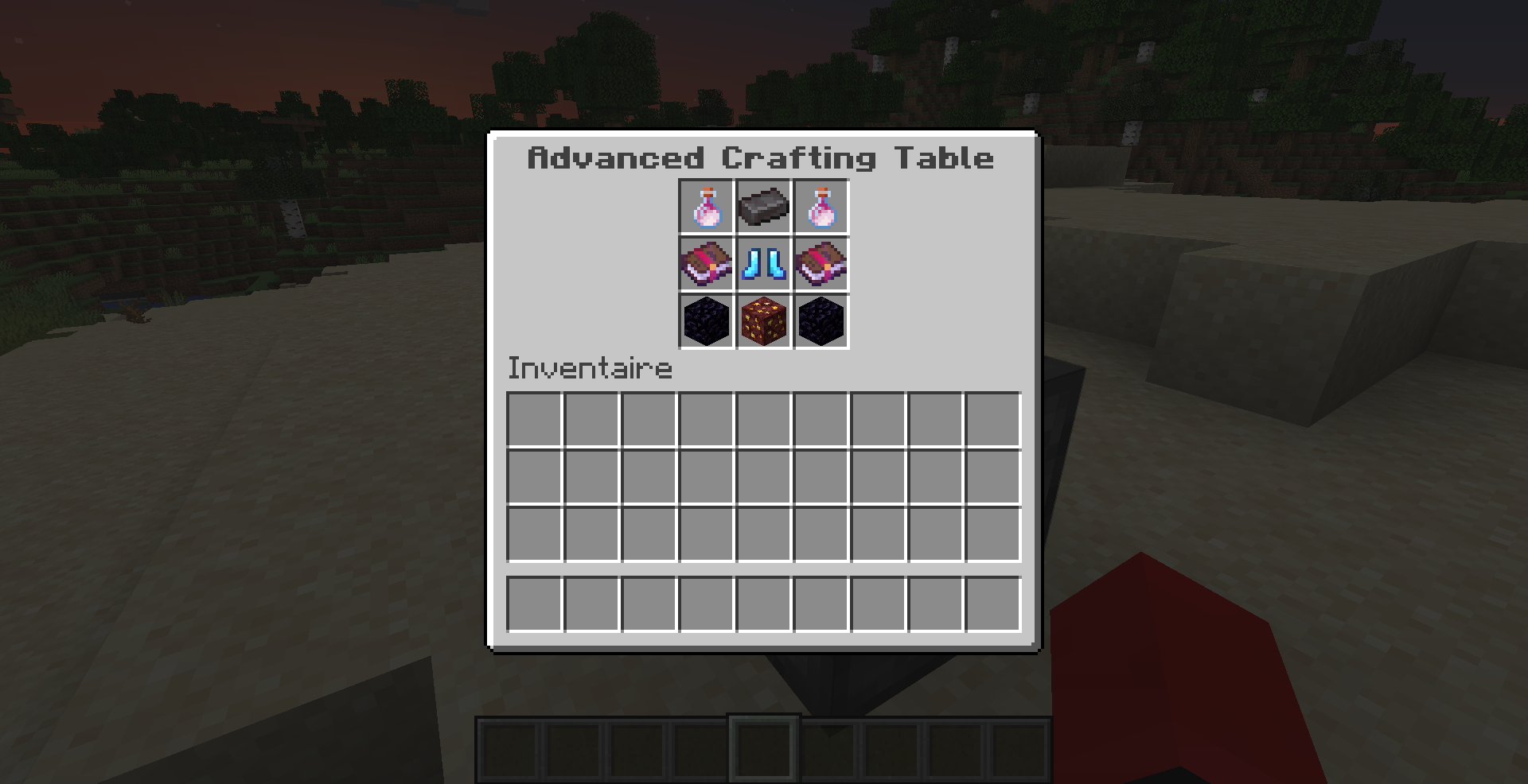 You surely got the message 'Too expensive!' on your anvil, this recipe to be made in the Advanced Crafting Table will allow you to reduce to 0 the cost of enchantment of your tool and to add enchantments. Simply replace the middle tool by your tool.