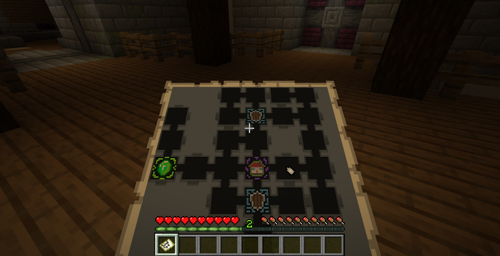 - 2 chorus fruit which once eaten, will teleport you to the first room.
