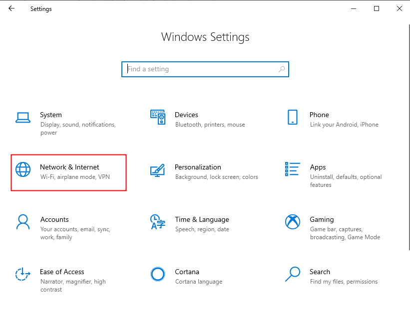 - Buka Windows Setting Pada PC/Windwos Client, Lalu Pilih Network & Internet