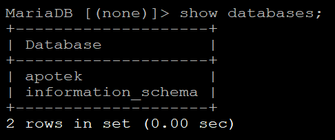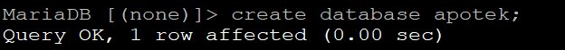 Ketik "use apotek;" Untuk Menggunakan Database Yang Kita Buat Seblumnya.