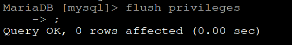 Oke Selanjutnya Kita Ketik Command "flush privileges",Flush Privileges berfungsi untuk memerintahkan flush kepada sistem untuk membaca ulang tanpa harus merestart server mysql
