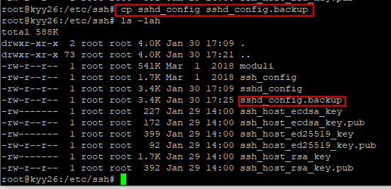 - Seblum Copy Kita chmod Terlebih Dahulu Pada File Directory. Jika Sudah Kita Copy lah file sshd_config menjadi sshd_config.backup dengan perintah cp /etc/ssh/sshd_config /etc/ssh/sshd_config.backup