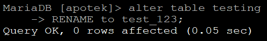 19). Oke Disini Kita Coba Melakukan Mengganti Nama Table.
