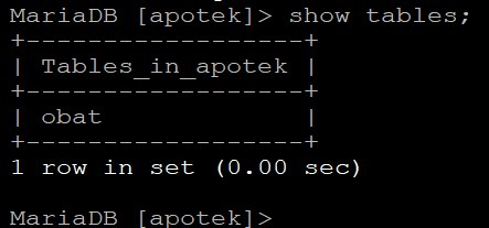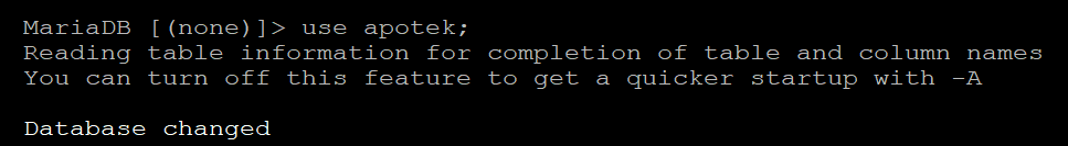 3). Oke Selanjutnya Kita Gunakan Database Yang Kita Inginkan Dengan Cara Ketik "use apotek;".