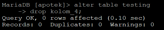 15). Oke Disini Kita Coba Hapus KOLOM Yang Di Inginkan.