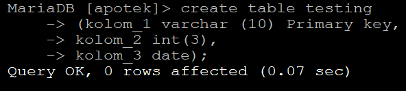 5). Oke Kita Buat Terlebih Dahulu Table Baru Yang Akan Kita Coba Pada QUERY ALTER.