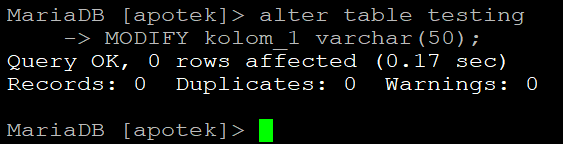 - Merubah Type DATA Pada KOLOM Atau FIELD