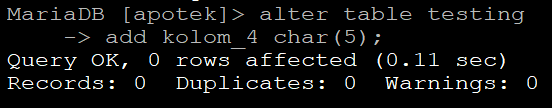 13). Oke Disini Kita Tambah KOLOM Dengan Menggunakan Query ALTER.