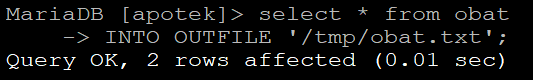 6). Oke Disini Saya Akan Mencoba BACK UP Isi Table Obat Dengan Perintah Dibawah.