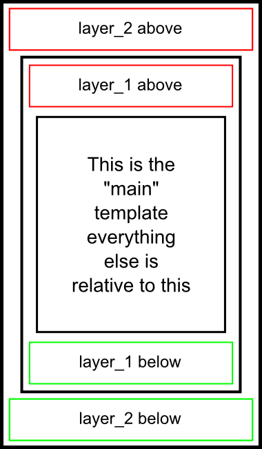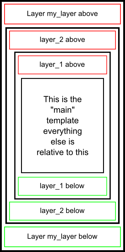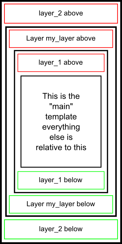 Layers are a slightly more complex beast. Layers are used to define "accessory" template elements that should be placed before (i.e. above) and/or after (i.e. below) the main template. They can be used for example by addons to "inject" specific pieces of template in certain positions.