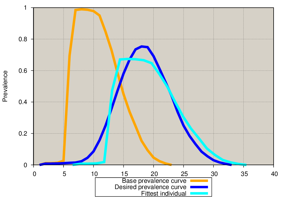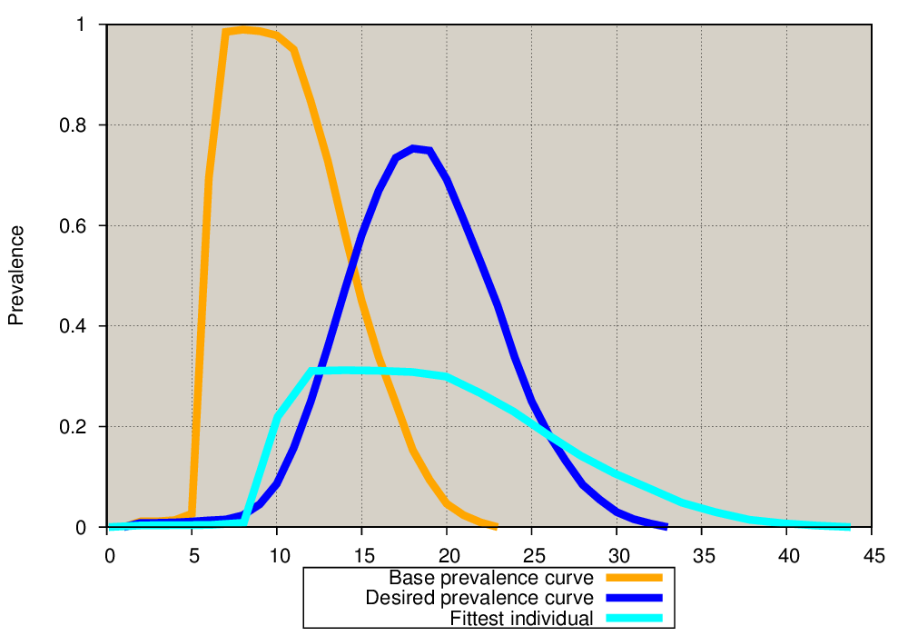 - Second error calculation: Given a point on the desired prevalence curve, find the shortest straight-line distance from that point to a point on the GA curve. The error is that shortest distance.